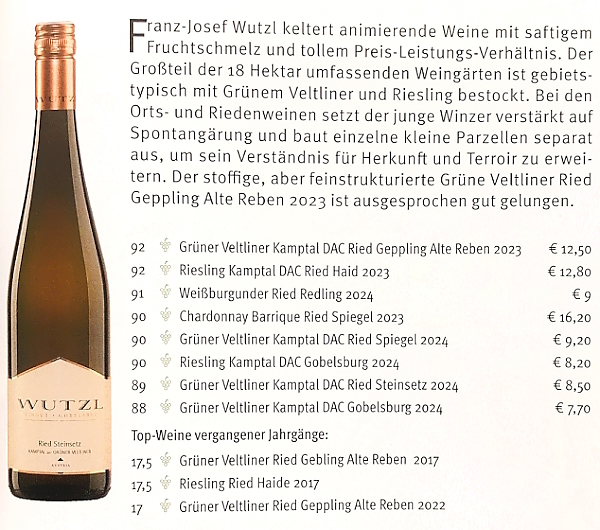 Besonders hervorgehoben wurden unsere gebietstypischen Weine aus dem Kamptal, allen voran Grüner Veltliner und Riesling, die für Herkunft, Charakter und Tiefgang stehen. Hohe Bewertungen erhielten unter anderem der Grüne Veltliner Kamptal DAC Ried Geppling Alte Reben 2023 sowie der Riesling Kamptal DAC Ried Haid 2023. Auch unseren anderen Weine überzeugen durch Struktur, Frucht und ein ausgezeichnetes Preis-Leistungs-Verhältnis.